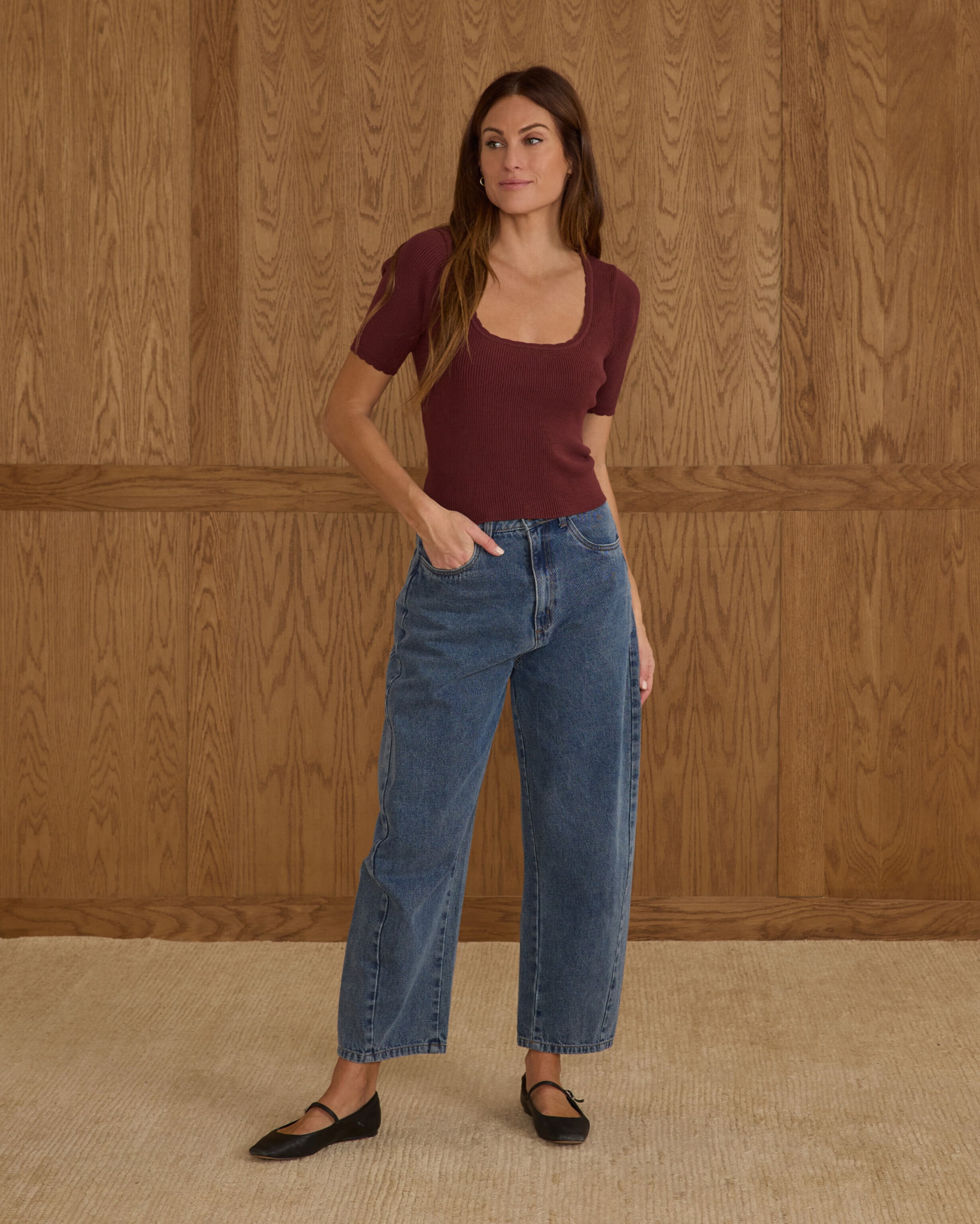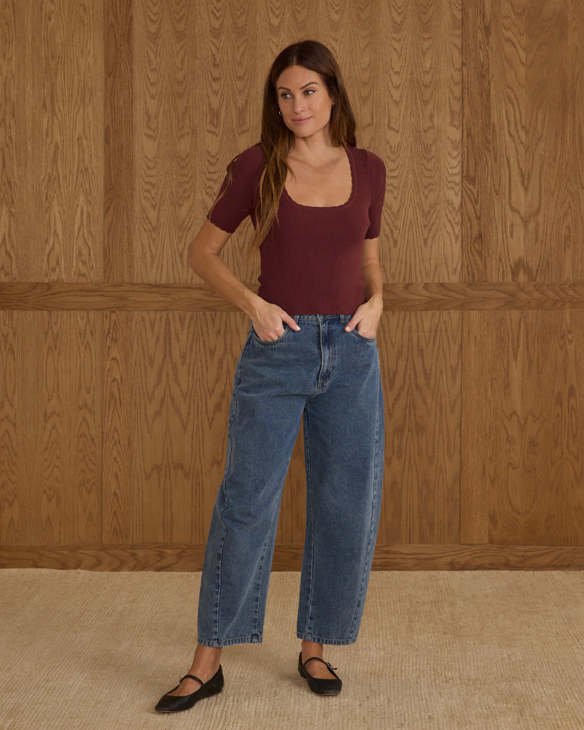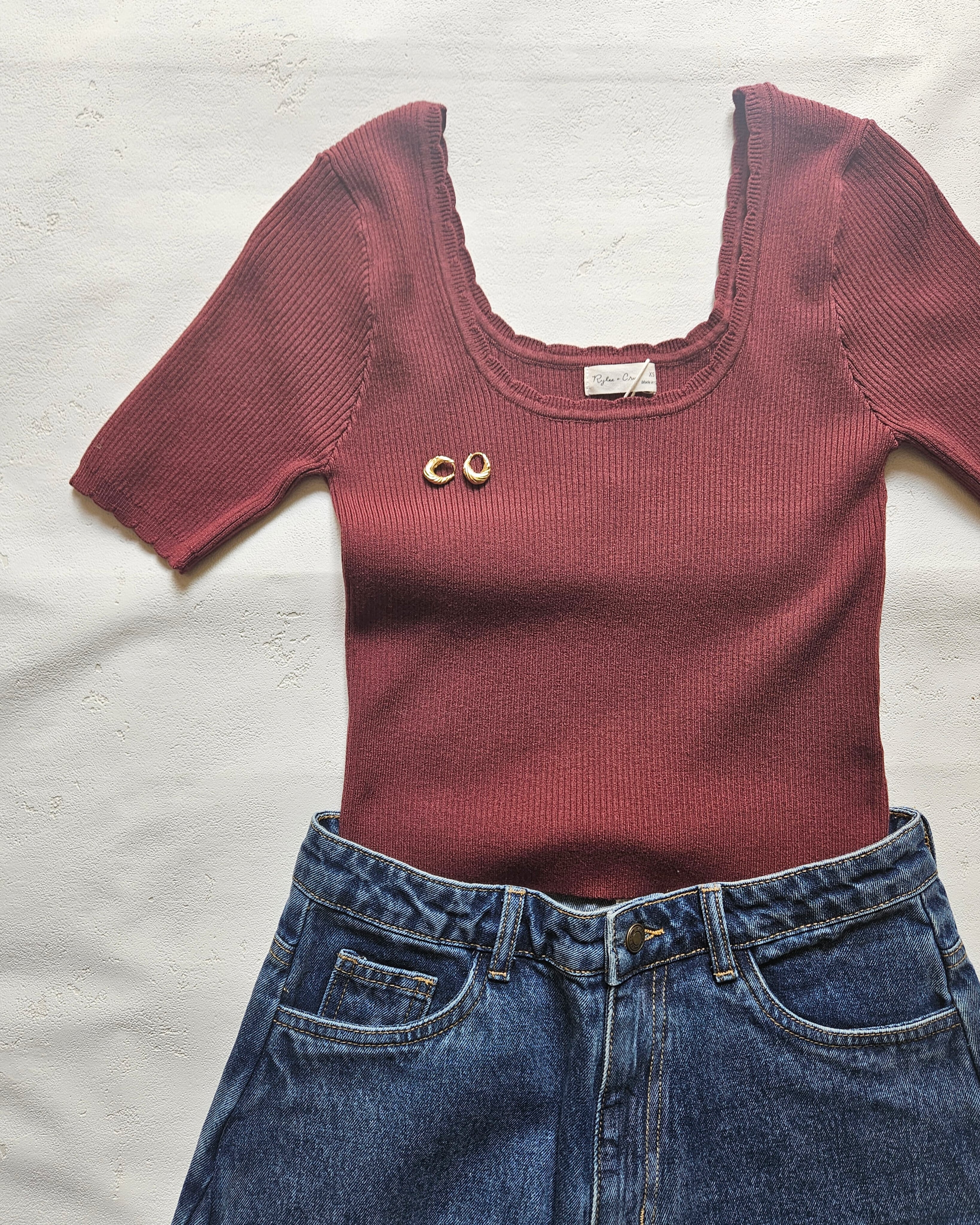 【Rylee+Cru】SCALLOP TEE / BURGUNDY