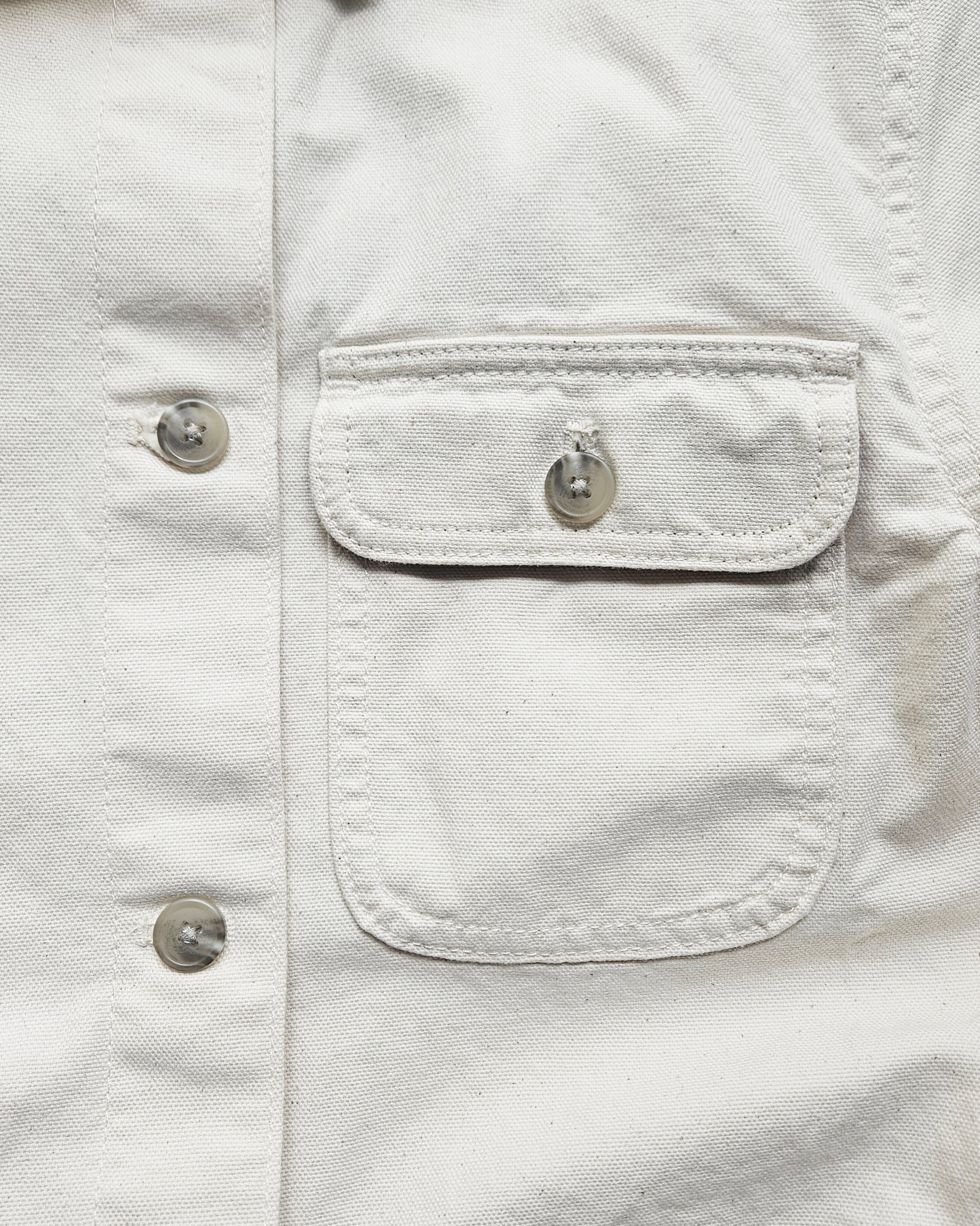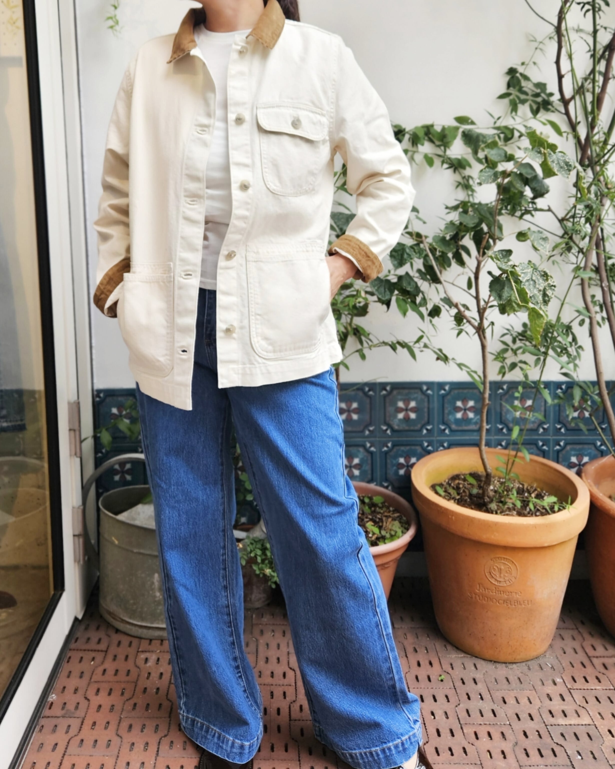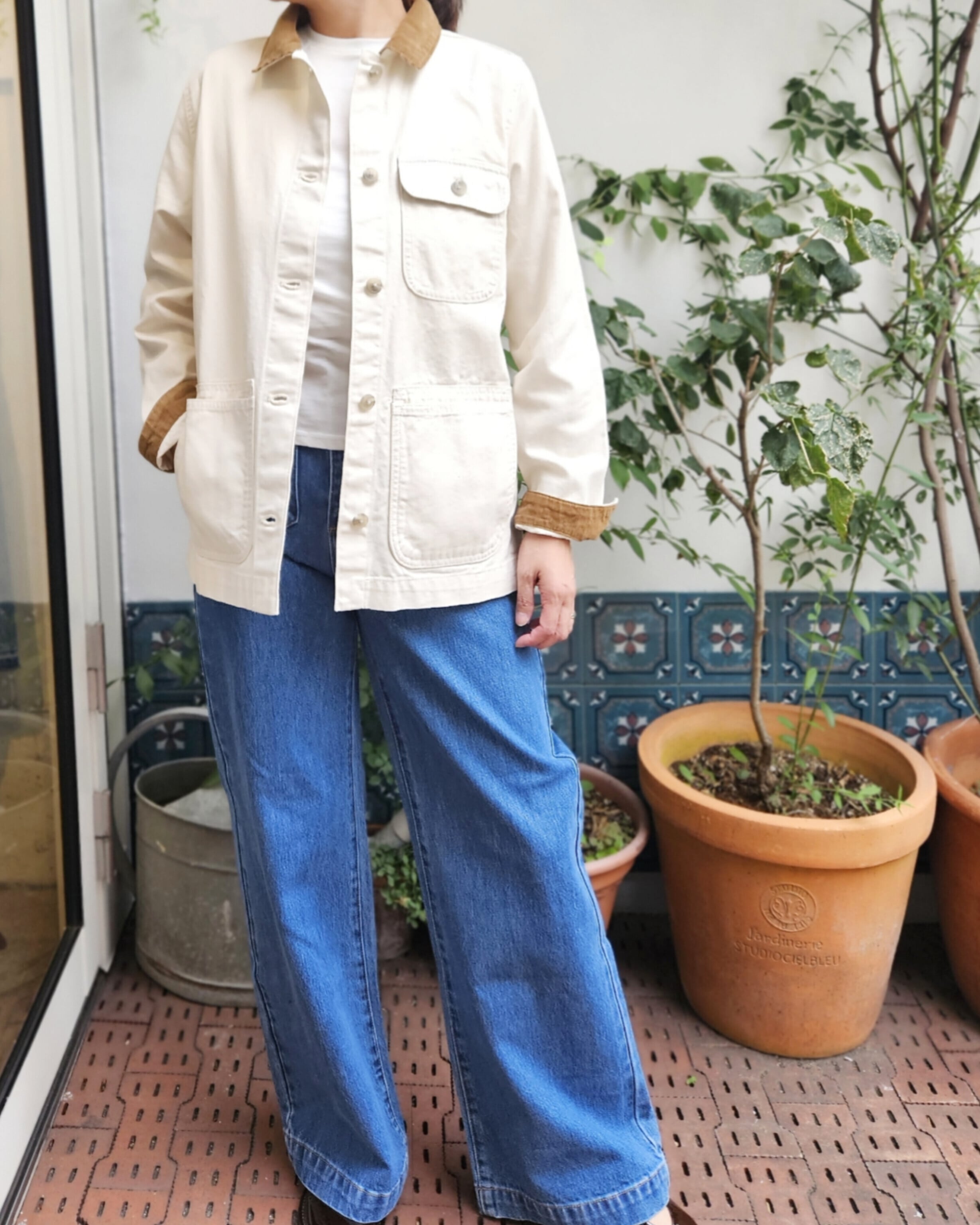 襟とインナーカフスのコーデュロイがポイントとなっているキャンバスコート