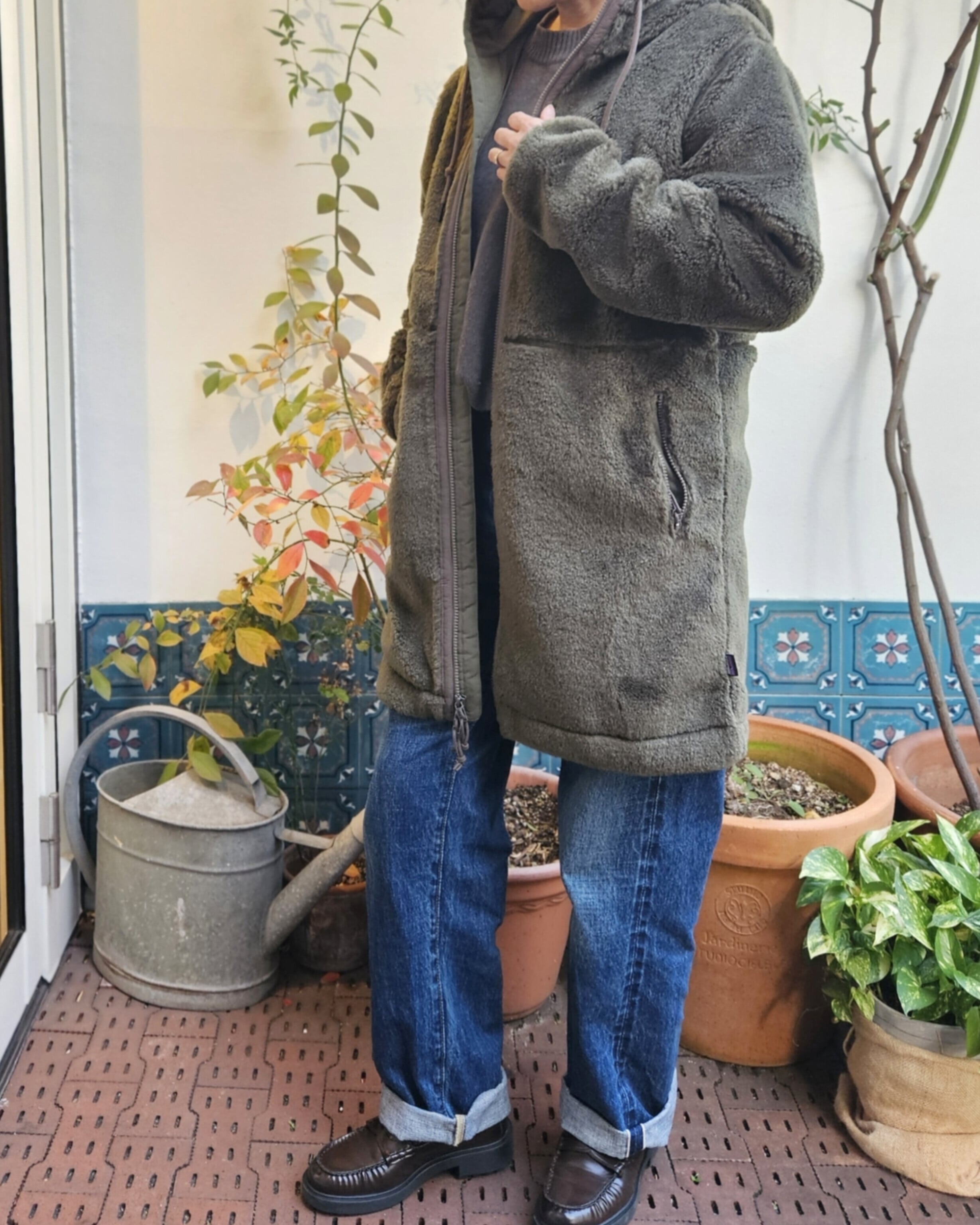 長め丈ではありますが、ダブルジッパー仕様なので自転車に乗る時などにも足さばきがよく動きやすさも問題なし