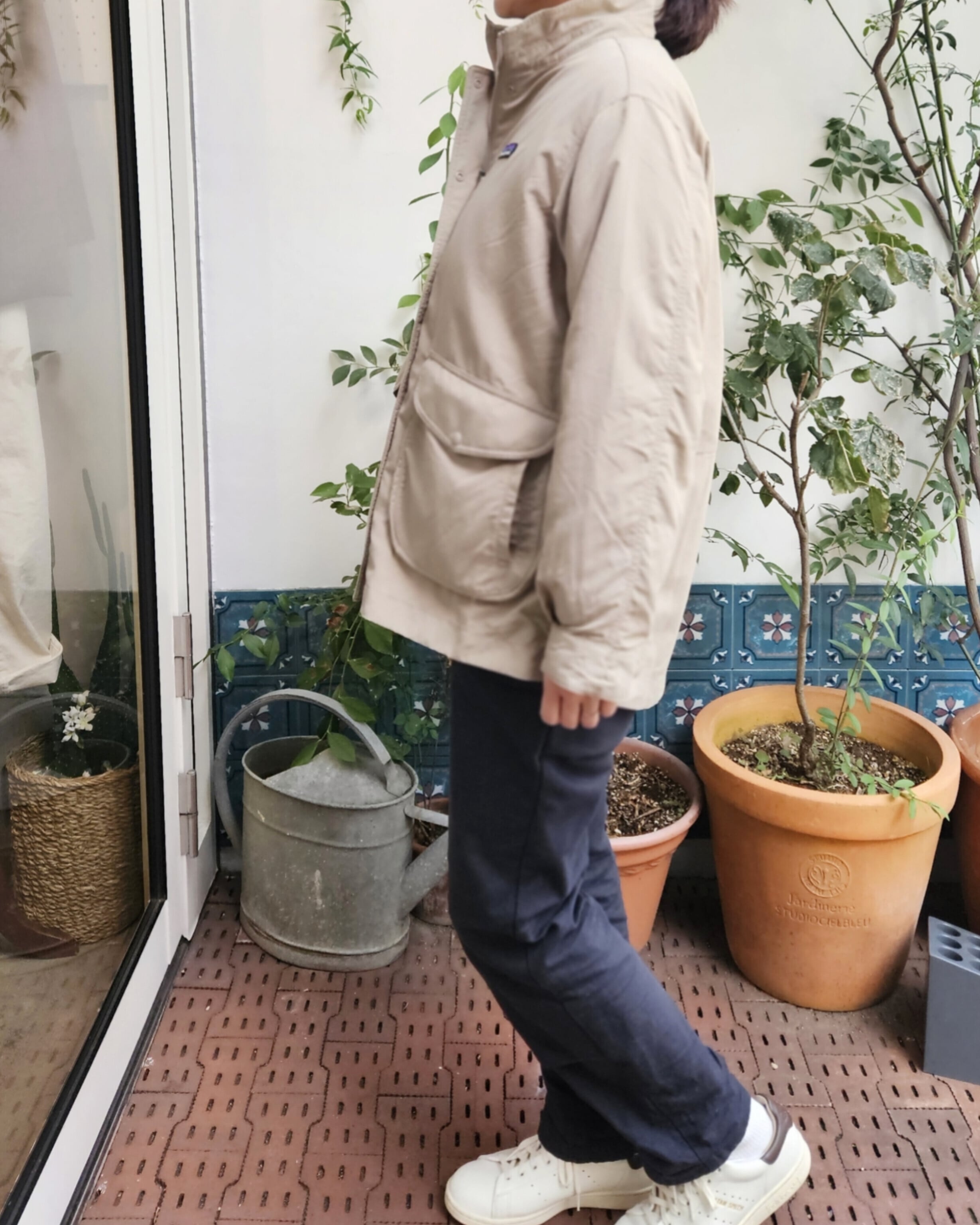 インナーのフリースは襟なしタイプなので、お手持ちの他のアウターとレイヤリングするときにももたつくことなくすっきりと着こなし可能