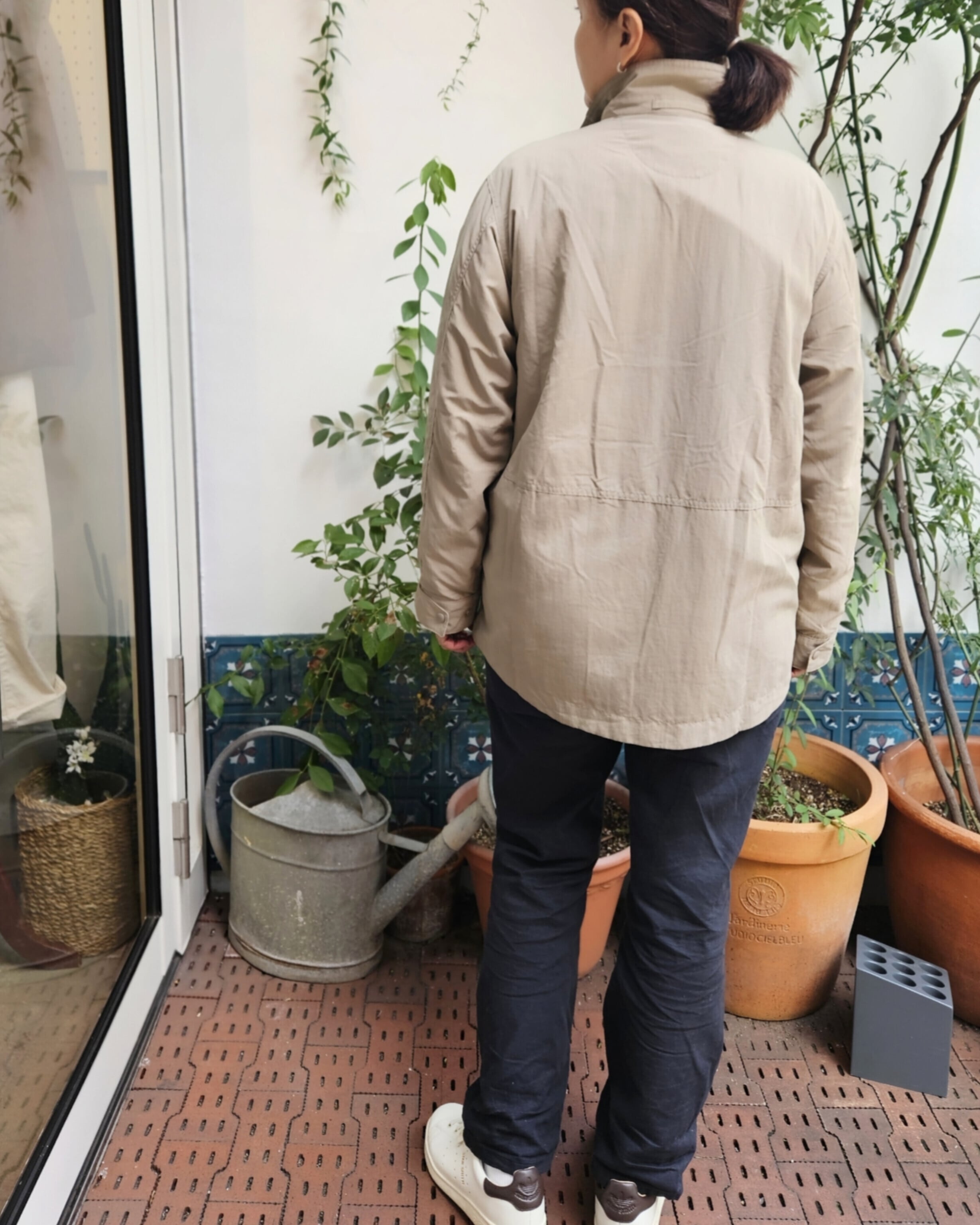 *シェルはリサイクル・ナイロン100%のエコニールのリップストップで、PFASを意図的に使用せずに製造されたDWR(耐久性撥水)加工済み