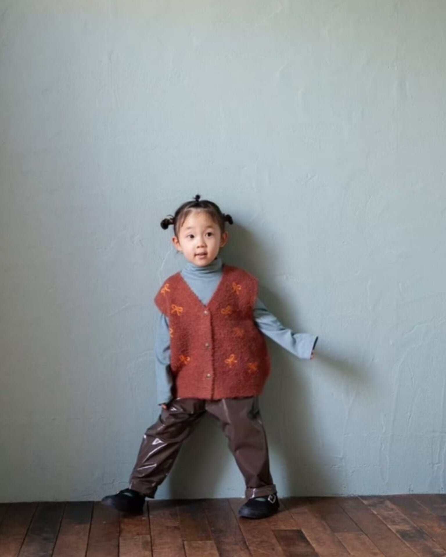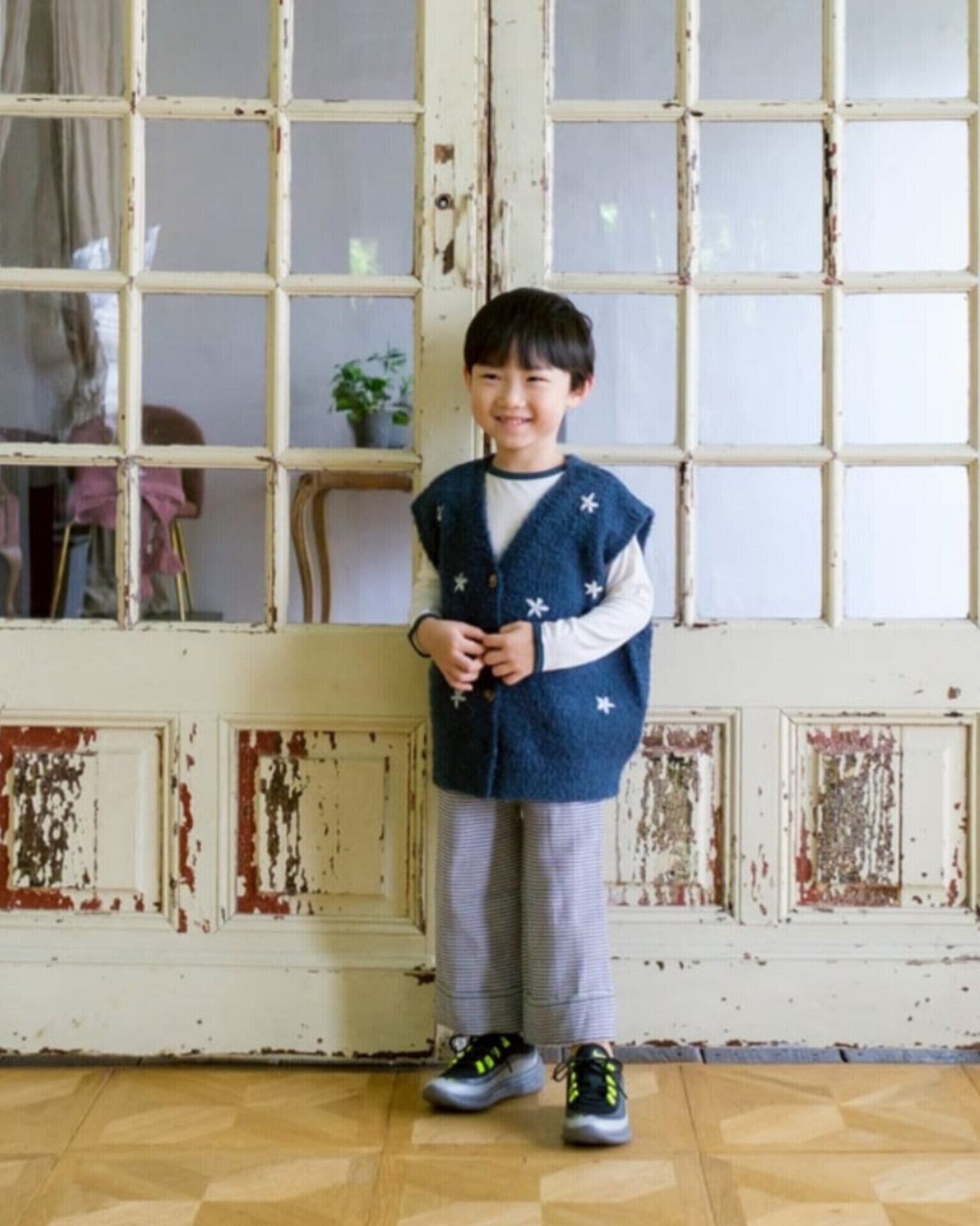 シンプルな薄手トップスに重ねるだけでインパクト大なベスト