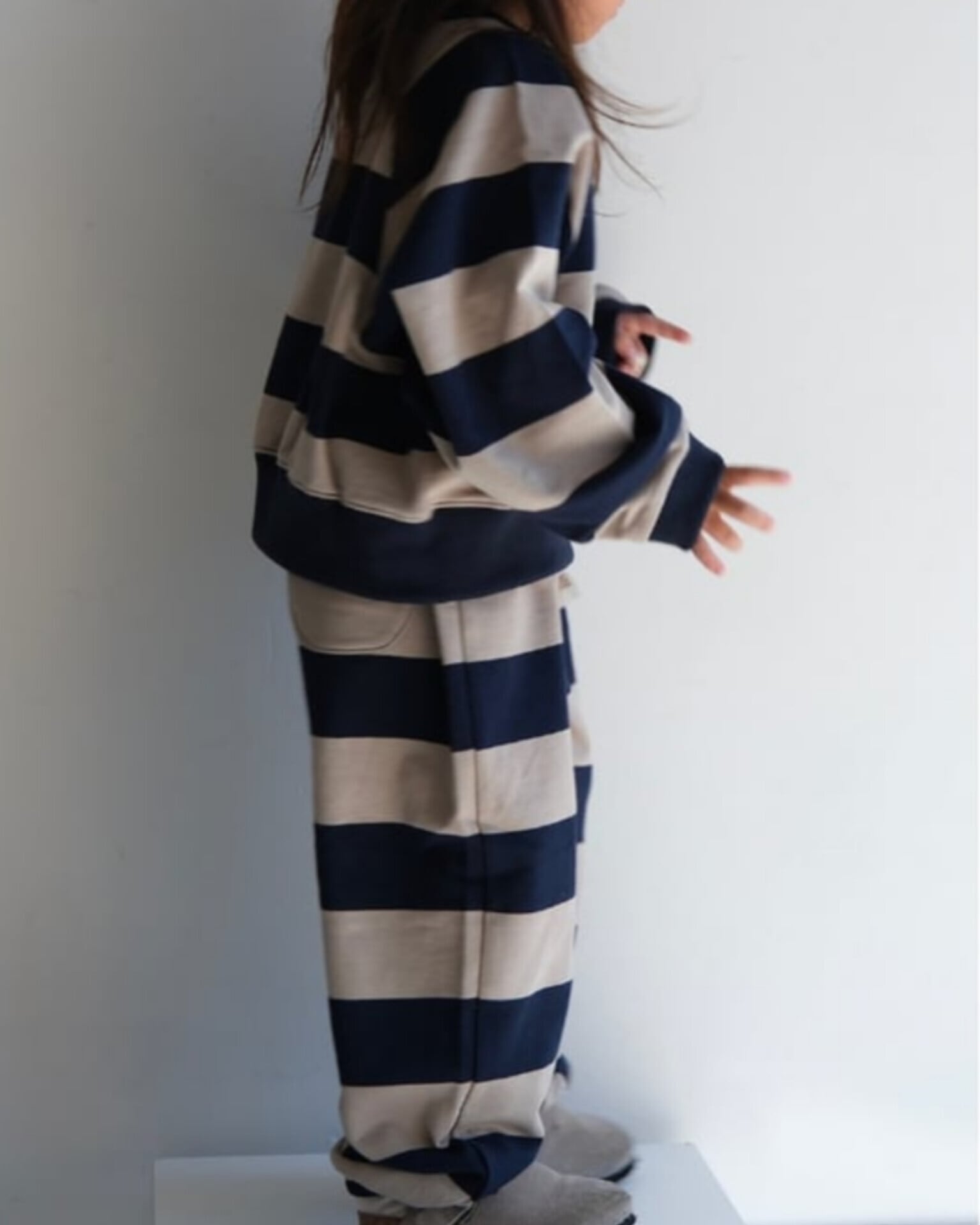 太めのストライプが新鮮でレトロなスウェットパンツ