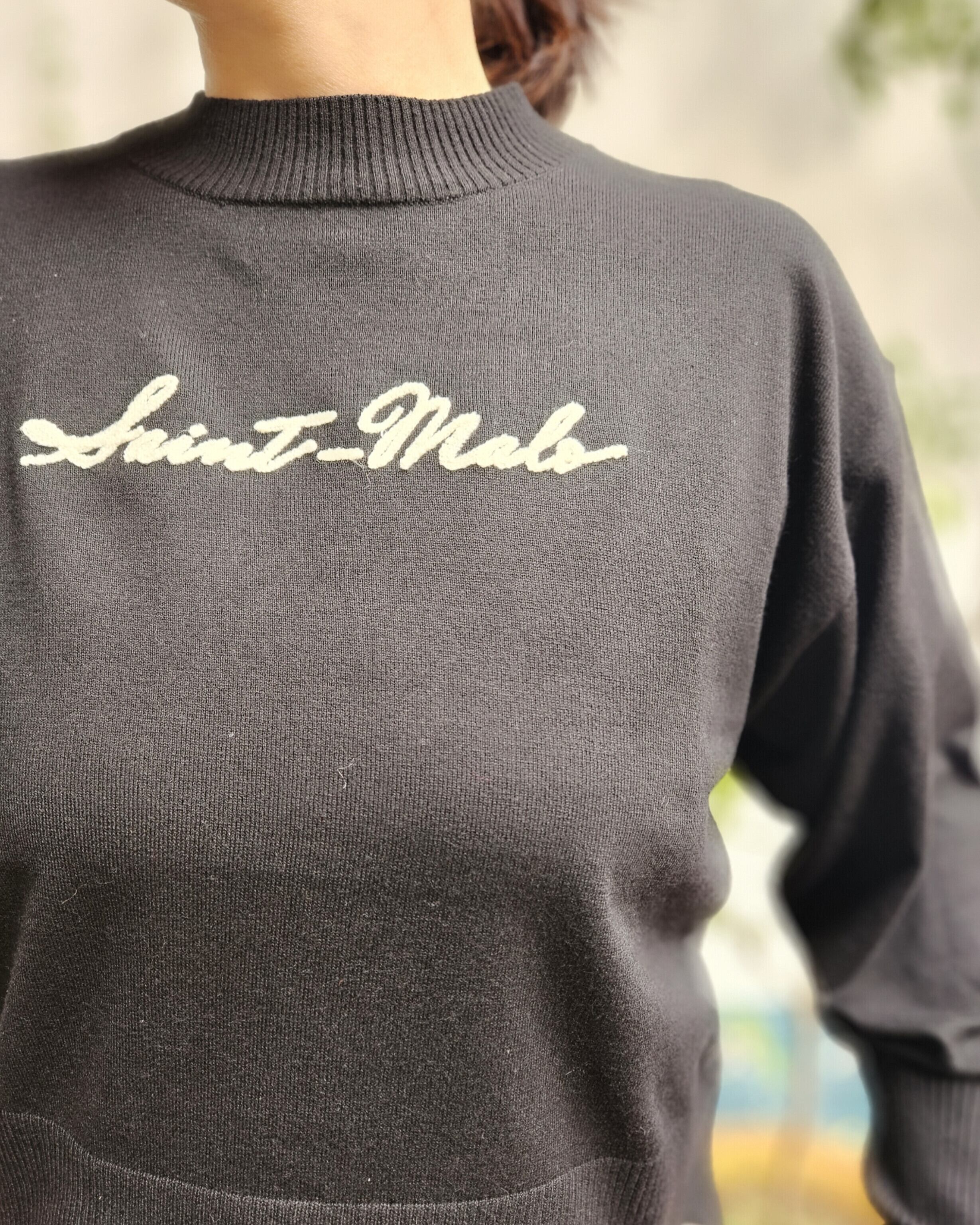 【Pont de Chalons】saint-malo刺繍ニットプルオーバー / BLACK / 22571412