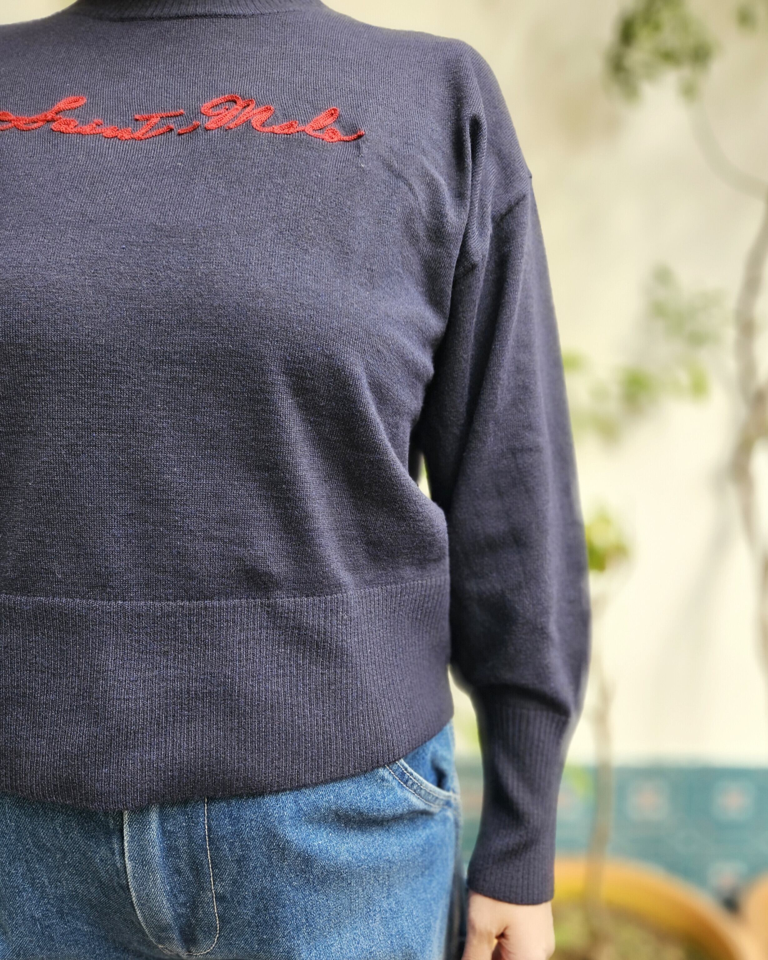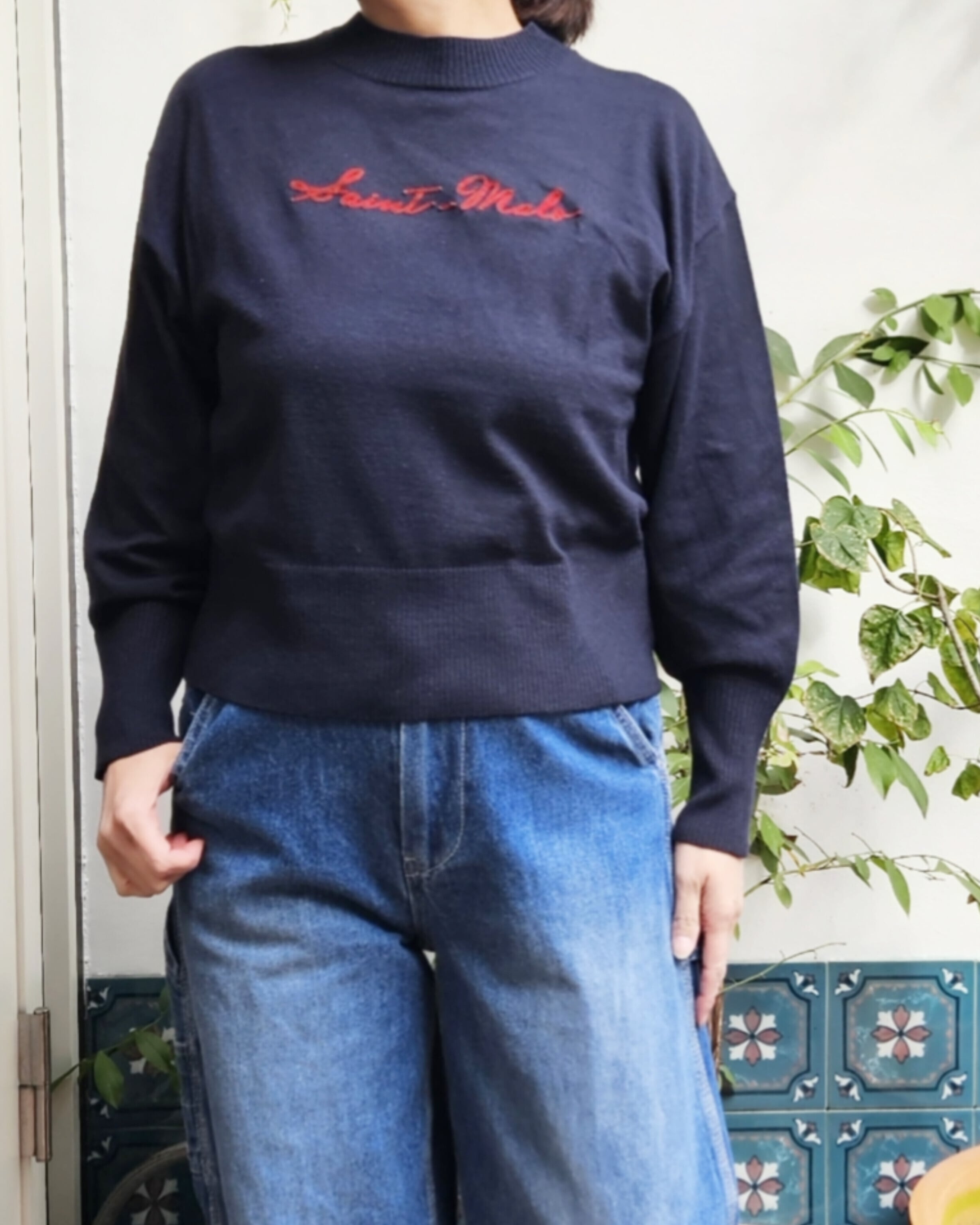 【Pont de Chalons】saint-malo刺繍ニットプルオーバー / NAVY / 22571412