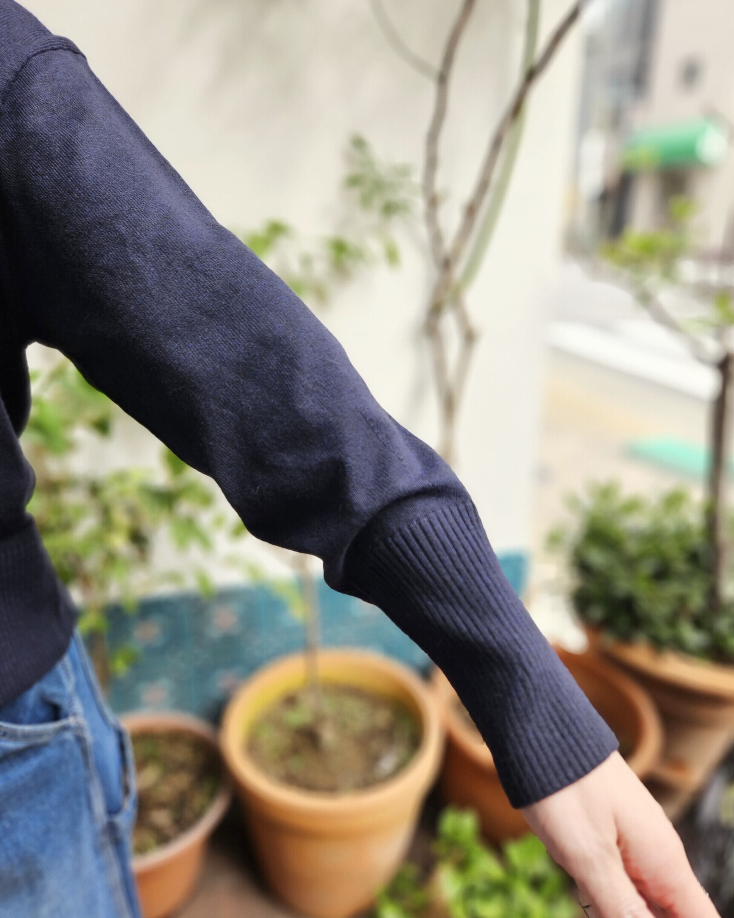 そのまま1枚で着るのはもちろん、薄手のタートルやブラウスをインして着ても素敵に決まります