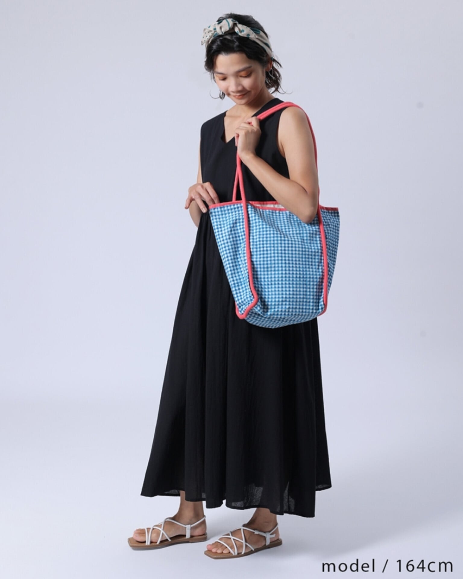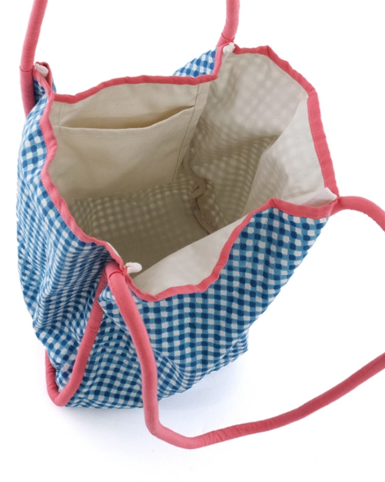ブロックプリント ギンガムチェックバッグ / BLUE