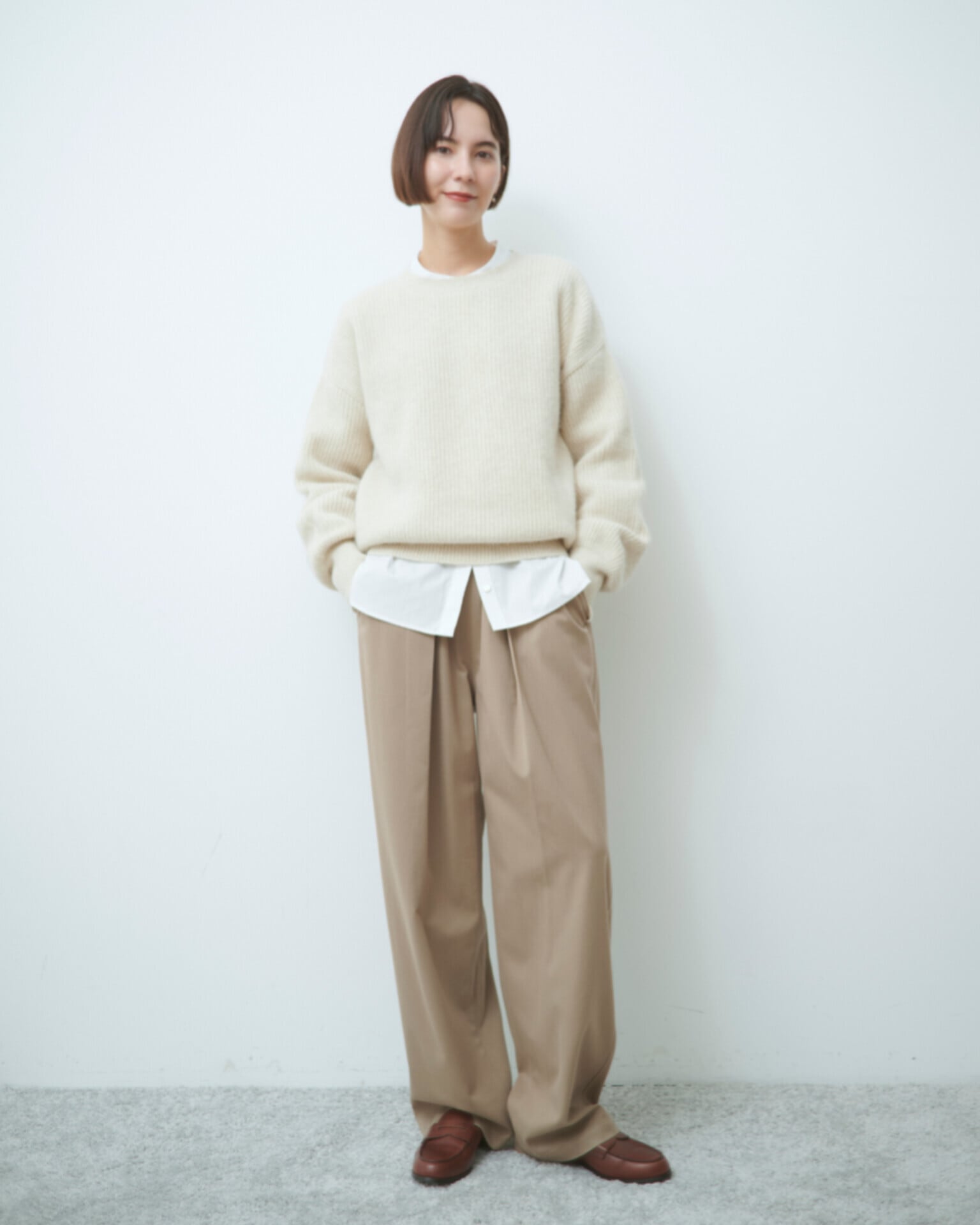 素材はカーディガン同様にブルーフォックスとウールをブレンドした、軽く温かい高級ウール素材を使用