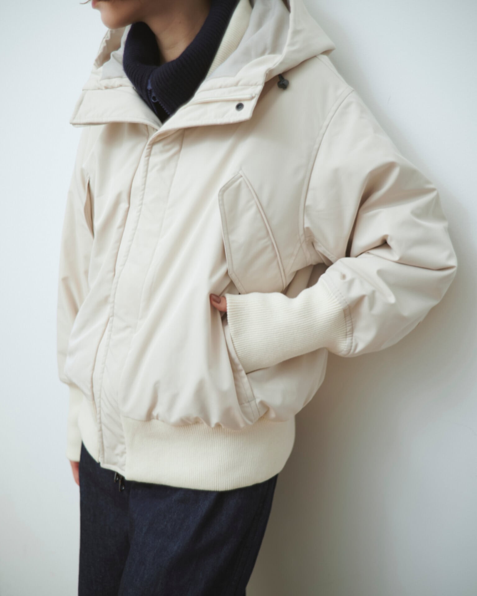 中には発熱系の綿を封入することで、軽量ながらも真冬にも着用可能に