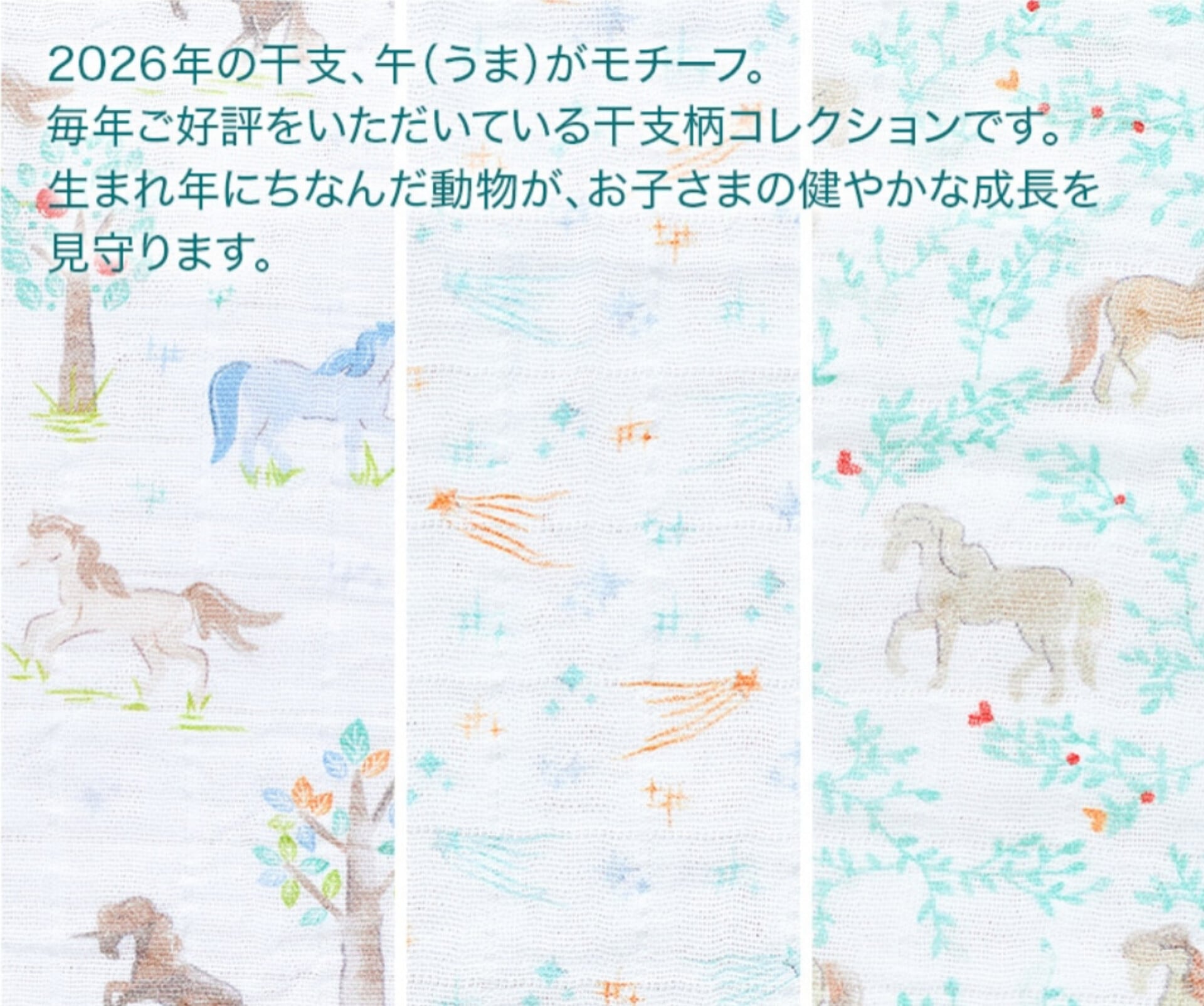 こちらは2026年の干支、午(うま)をモチーフにした毎年大人気の干支柄シリーズ