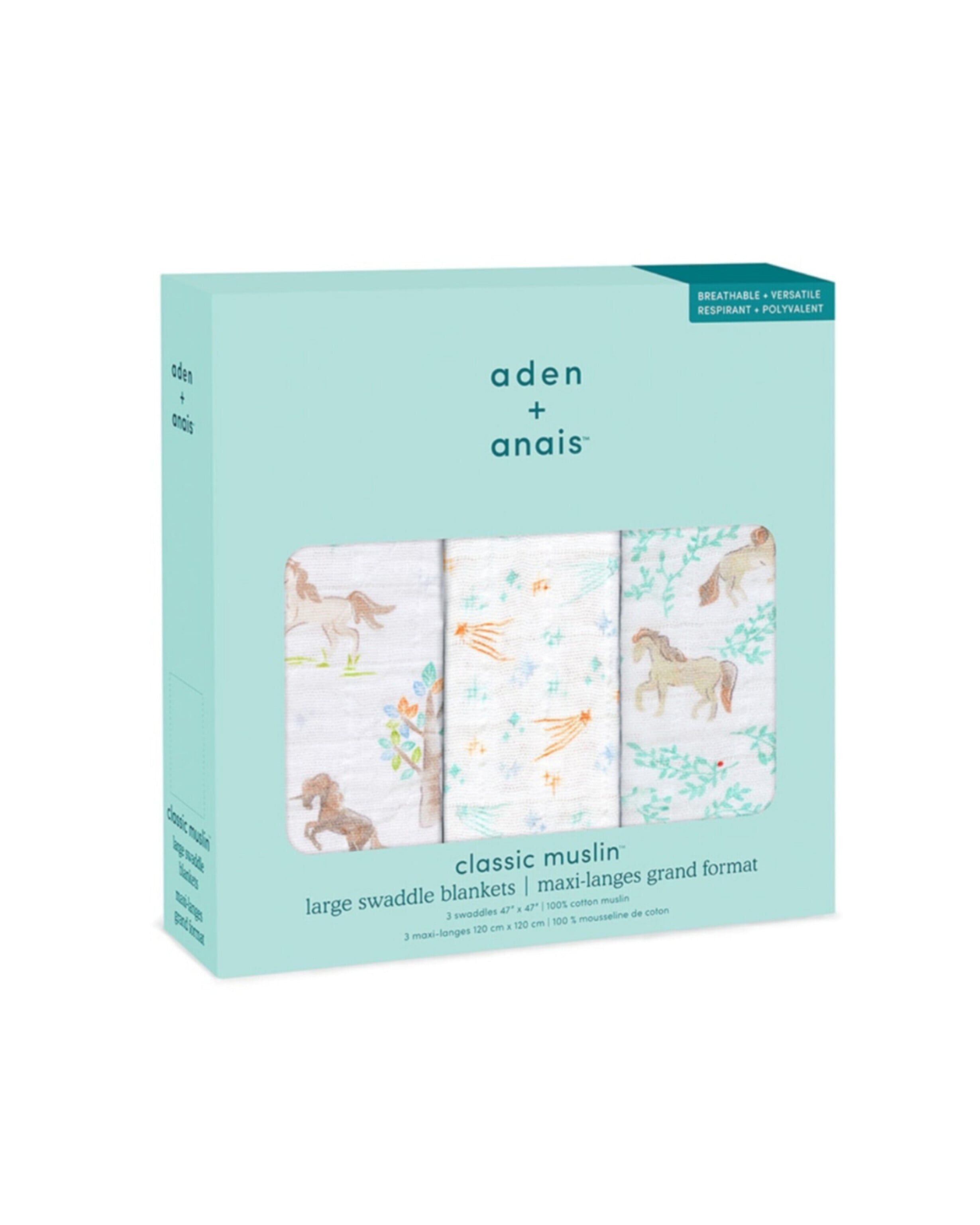 【aden and anais】【 干支柄 うまコレクション】 おくるみ3枚組 / year of the horse