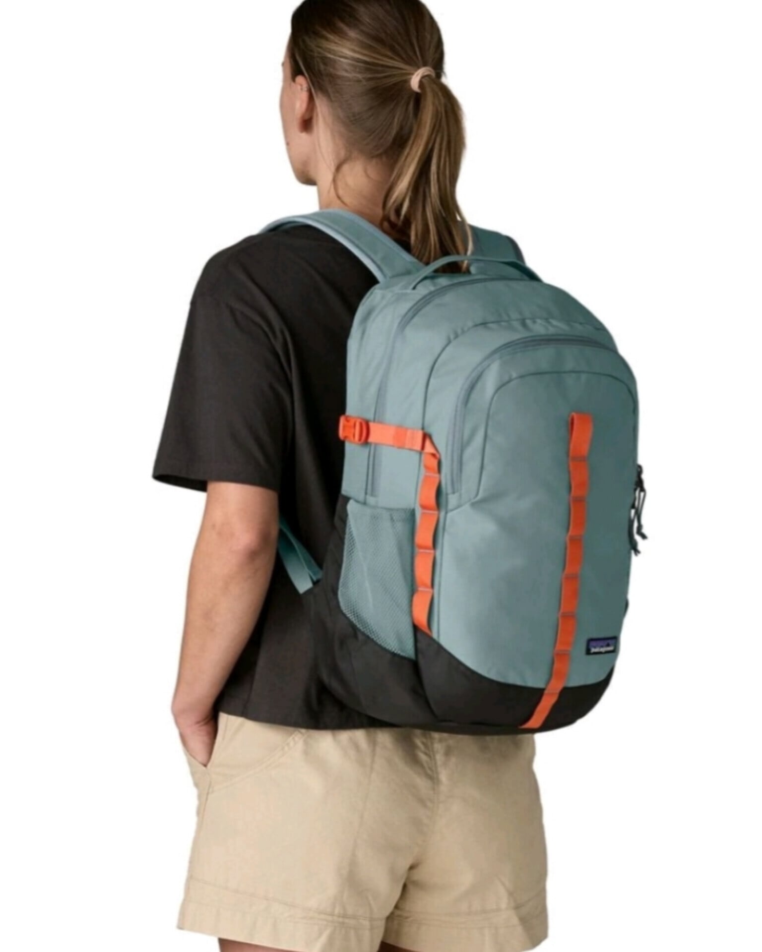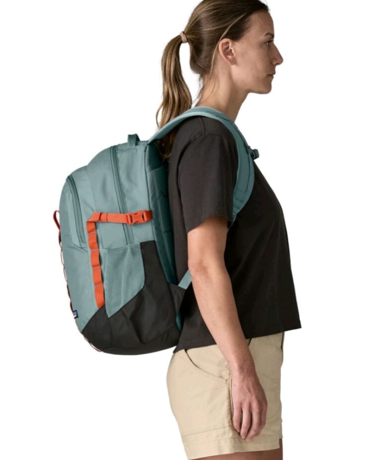 外側のウォーターボトル用ポケットにはシェル素材とストレッチメッシュを使用