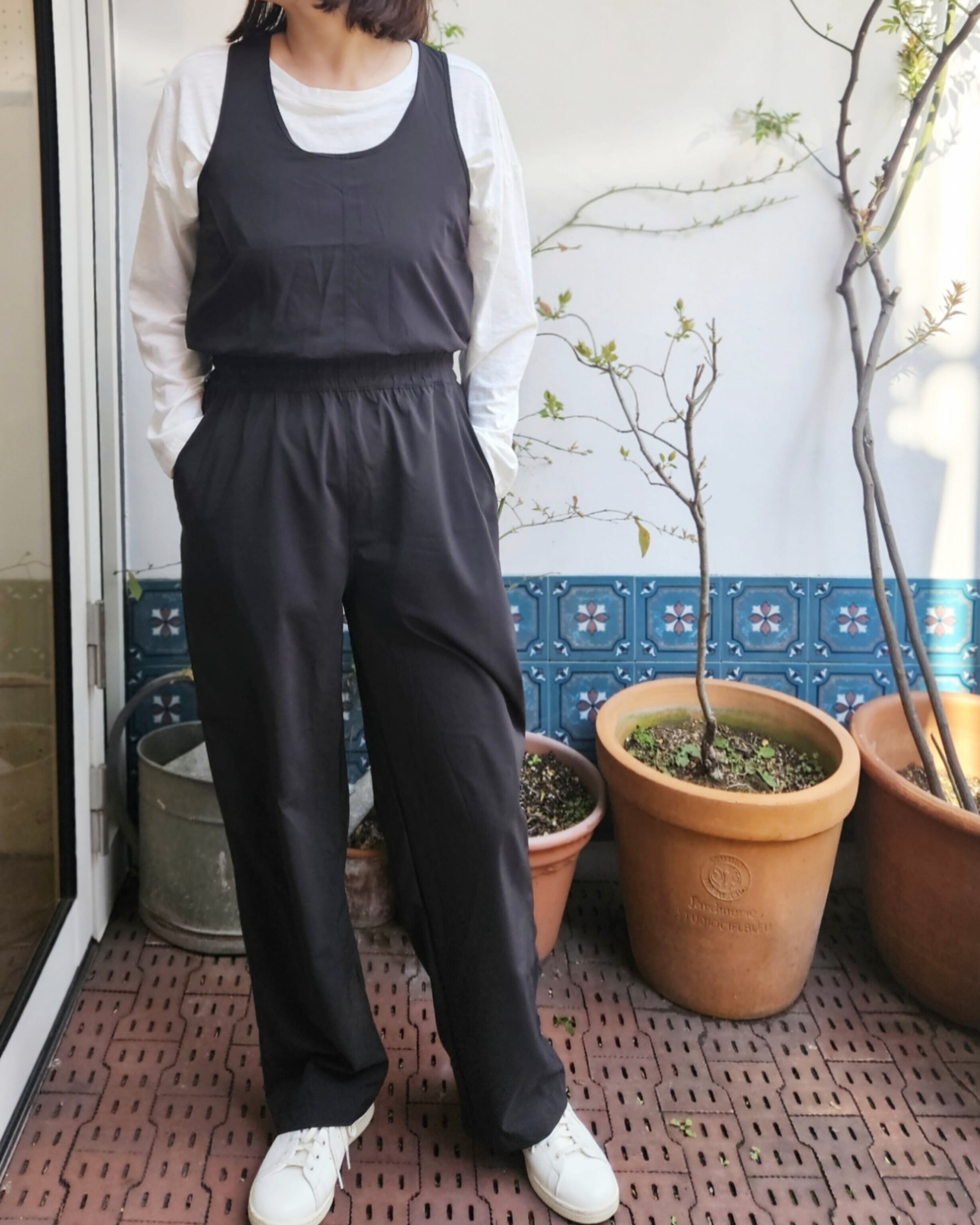 *ストレートな裾を備えたレギュラー・フィットで気軽に着用できる、プルオン型のワンピースのジャンプスーツ