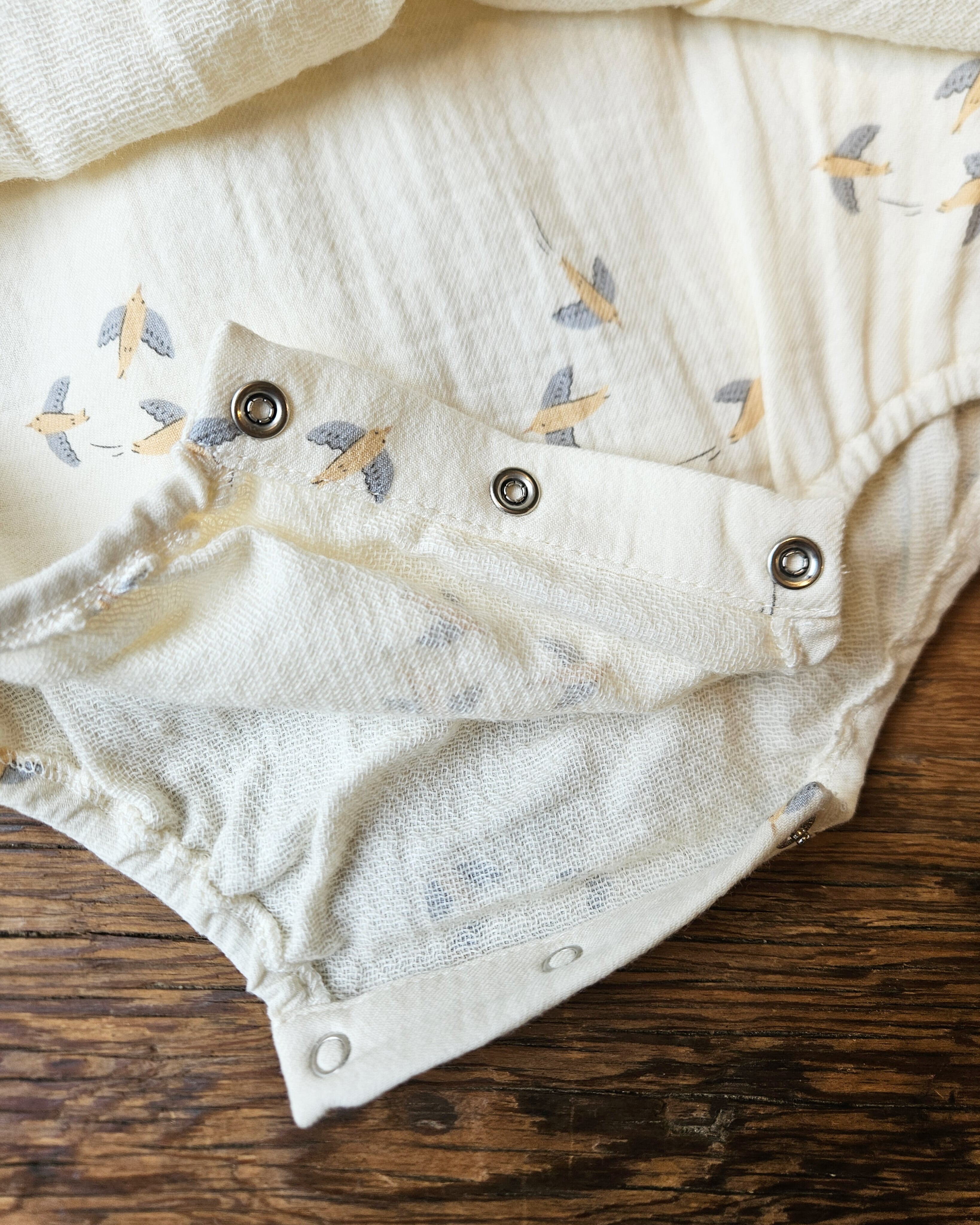 後ろボタン留め、股下スナップで着替えも簡単です
