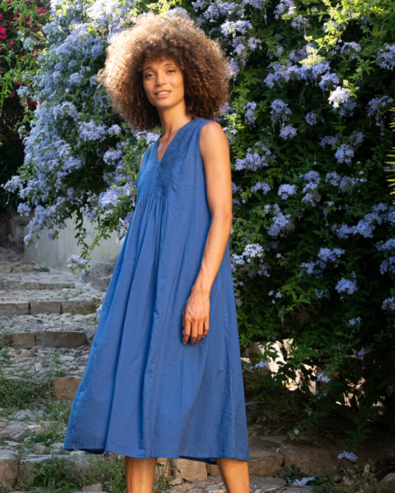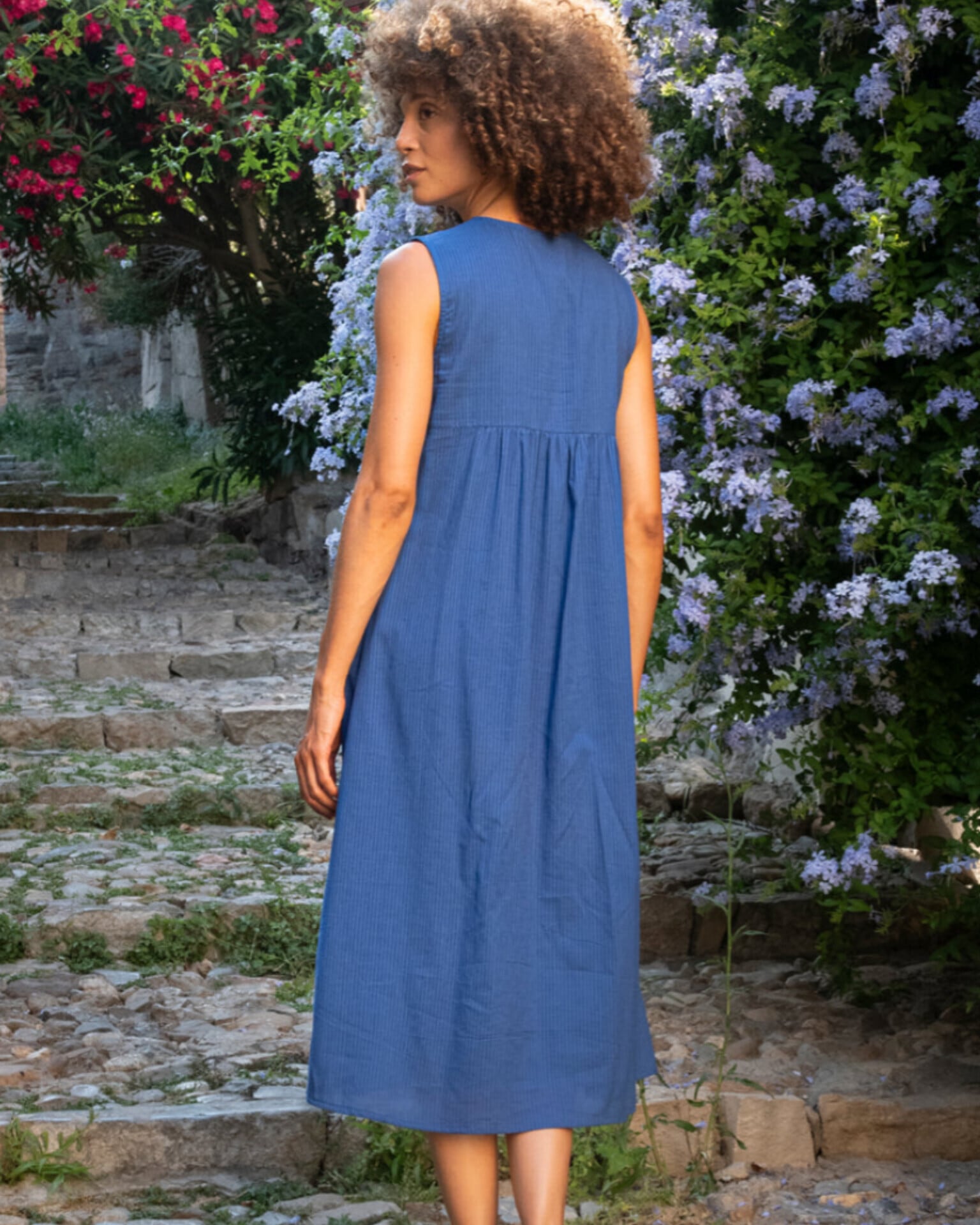 【ZEN ETHIC】Vネックノースリーブワンピース / BLUE