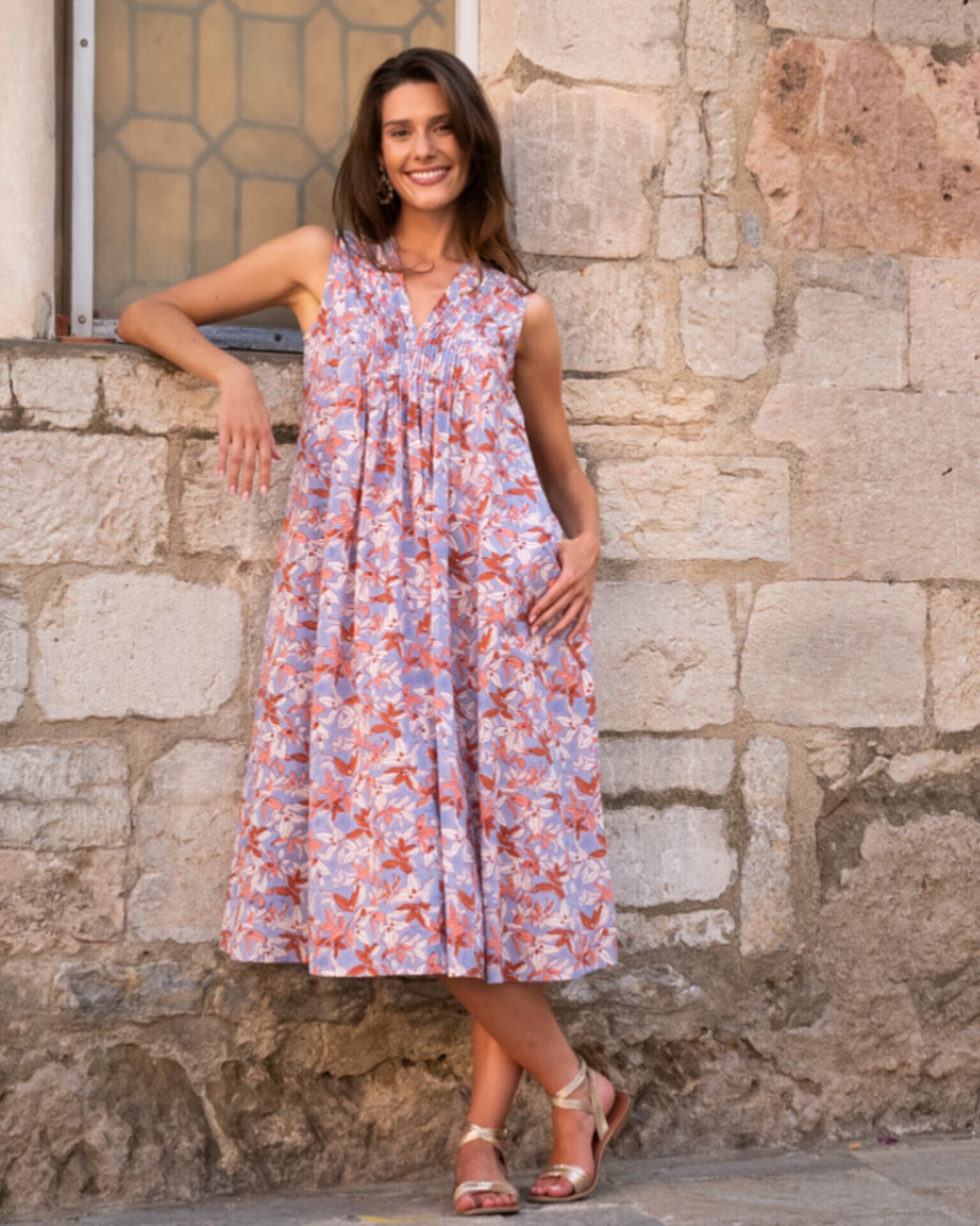 プリントのモチーフはパリで独占的にデザインされ、エシカル・ビジネスの一環としてインドで生産されています