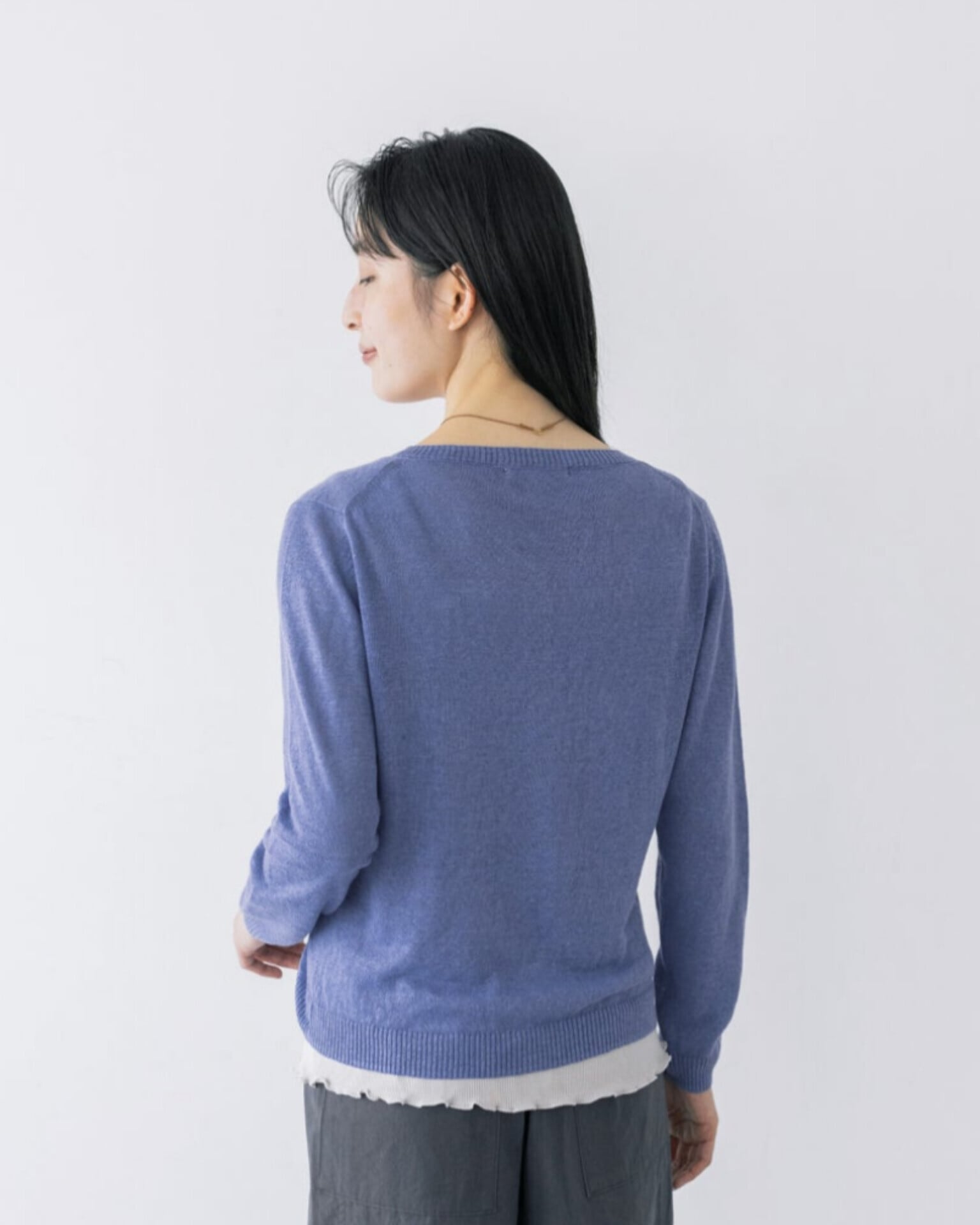 浅めのVネックですっきりとした抜け感を出せ、軽やかに羽織れます