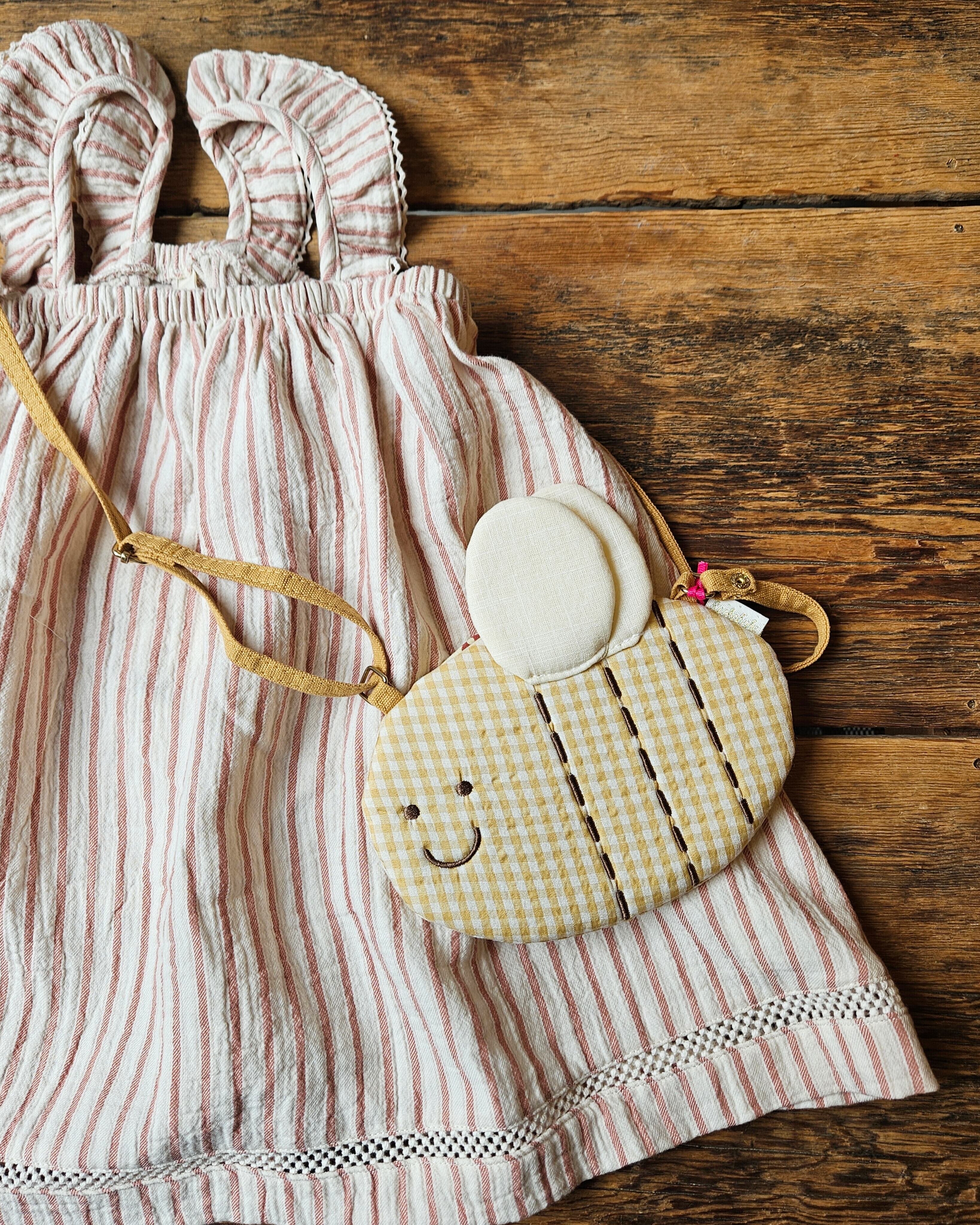 【QUINCY MAE】RUFFLE TANK DRESS VINTAGE STRIPE / NATURAL