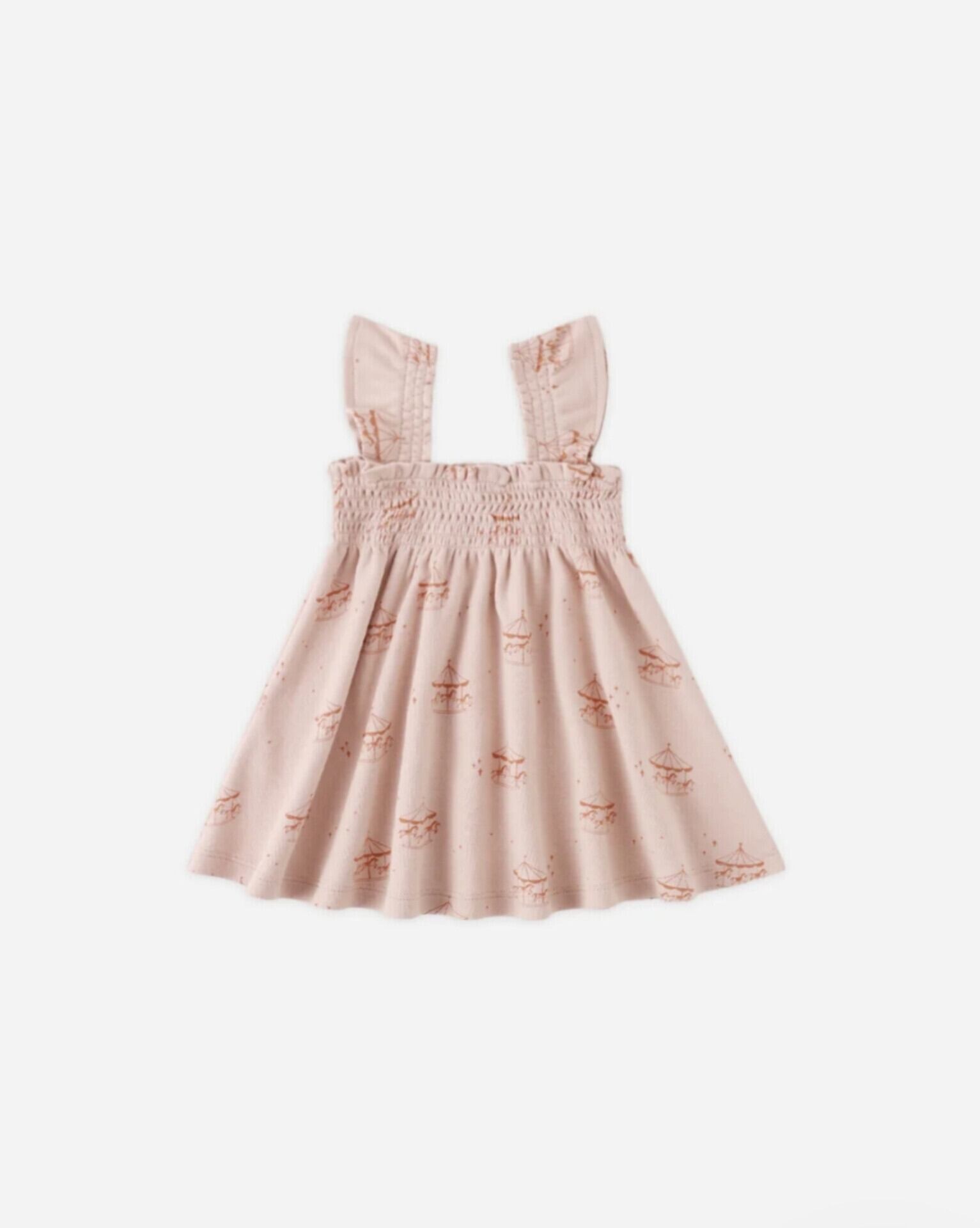 【QUINCY MAE】SMOCKED JERSEY DRESS CAROUSEL / BLUSH